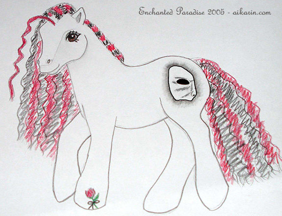 Mane and Tail: Blue, red and pink with clear tinsel.