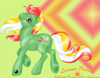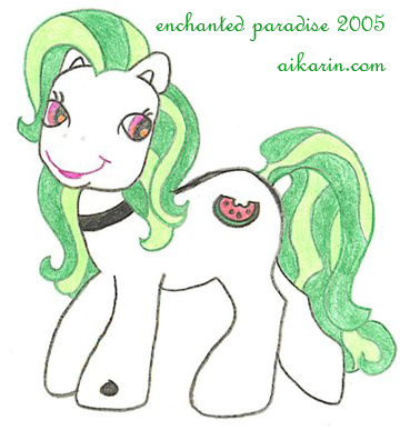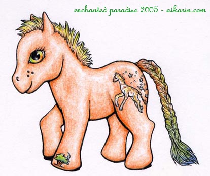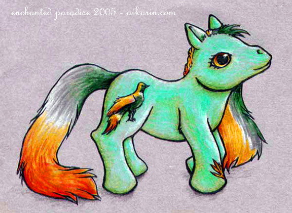 Description: A pale green pony, Raggian has a Bird of Paradise