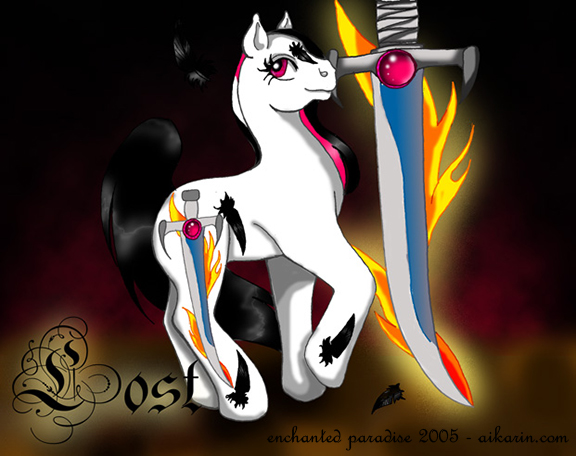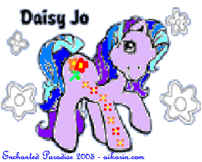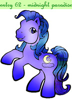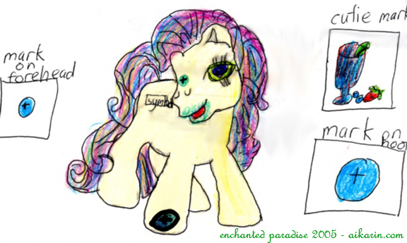 (not shown). Her mane and tail is dark blue, light blue, and purple.
