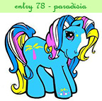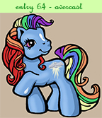 Description: She's a blue pony, with a rainbow mane and tail. The