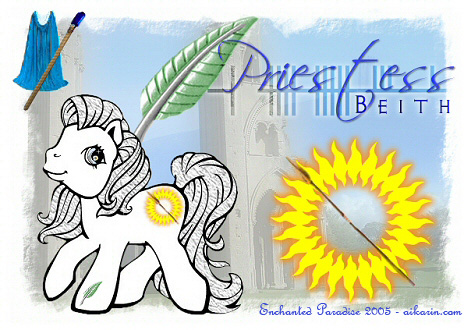 Description: Priestess Beith is a white pony with shiny silver hair.