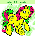 Description: Anola is a bright yellow pony with neon green and