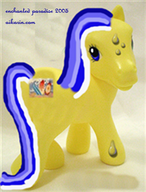 Description: Yellow pony, hair is 5 colours (4 shades of blue, one