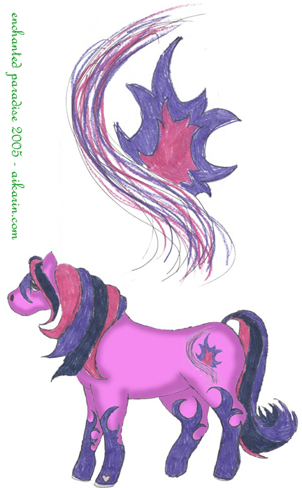Description: Mystic Flame is a pink pony with dark blue, deep purple