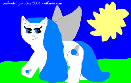 sky, and she wears silver star shaped clips in it- two in her mane