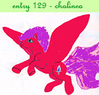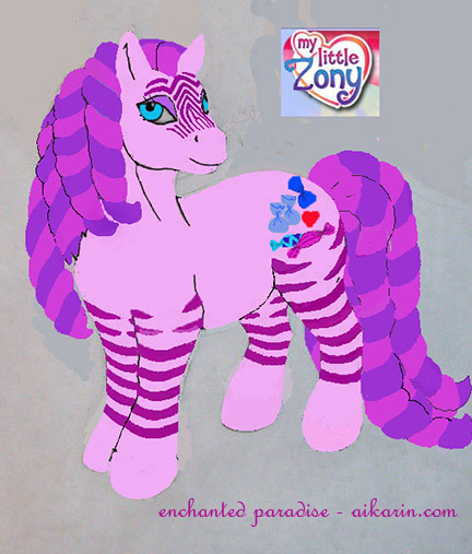 tail with thin magenta and white stripes. Her eyes are stripes of