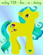 Description: Lac-A-Daisy is a bright lemon-yellow pony with