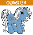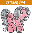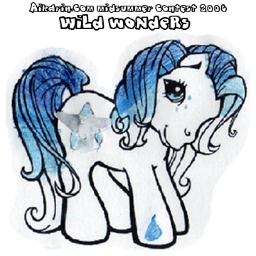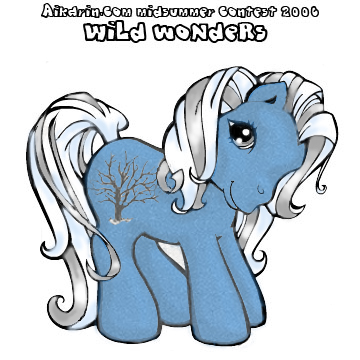 Her symbol is a black, leafless tree standing in snow. The special thing about this pony is that her whole body (except for the eyes) is covered in tiny glass beads, the kind you use to make plastic fruit look frosty.
