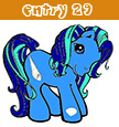 Description: Princess of the Sea is a light blue colored pony. Her hair is dark blue with seafoam colored stripes and corresponding tinsel. Her mane is chin-length, while her tail is able to wrap around her front legs comfortably. Princess of the Sea's eyes are light and dark blue swirls. Her symbol is a pair of cream seashells. The symbol denoting her magnet hoof is a smaller shell.