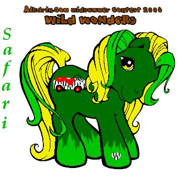 Description: Safari is a dark green pony with light green and yellow