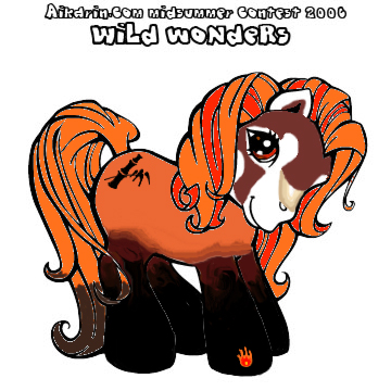 Story: As Sumatra's eyes would suggest, she is a rather dreamy pony and a real child at heart. Sumatra swims around the Amazon River all day, constantly daydreaming and playing around with others in her herd. A favourite activity of hers is Truth or Dare. Guess which one she prefers? That's right, Dare...and many times, she's had a crocodile snapping after her as a result! [She's also angered a few monkeys around the area, too.] Her least favourite activity? Catching fish for dinner...or at least trying to. |