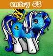 Description: She is a light blue pony with a lighting bolt on her thigh and going down her leg nearly hitting the little town on the bottom of her leg.
