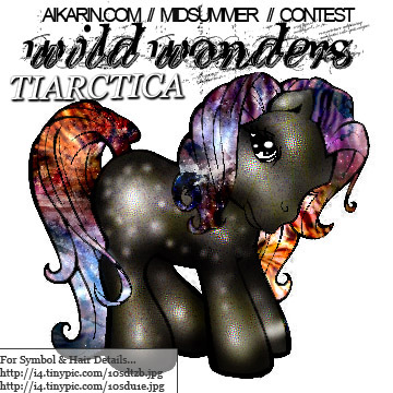 Description: Tiarctica is a metallic pony with colourful tiger-striped hair.