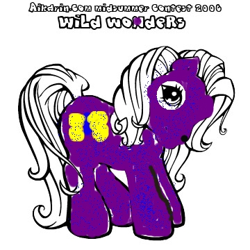 Mountain Rill, as her name suggests, spends most of her time in the mountains, listening to the rills (songs) of the shepherds and climbers, and occasionally makes up her own. Her shaggy coat keeps her plenty warm in the frosty winters, even when she goes galloping through the snowdrifts! Her favorite color is purple, like the tiny purple flowers that grow in her home, and her favorite thing to do is make snow angels! But what she enjoys best is doing these things with her friends, and after a long day of playing in the winter wonderland, they all go curl up and drink hot coco by the fire, making plans for the next day's adventures. |