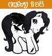Description: Dainty Dama is a so-soft pony with black and white details. She has black and white hair, and two black horns.
