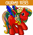 Amazon Dreams is a red pony with macaw wings. Her symbol is a macaw footprint. Her hair is mixed rainbow colors.