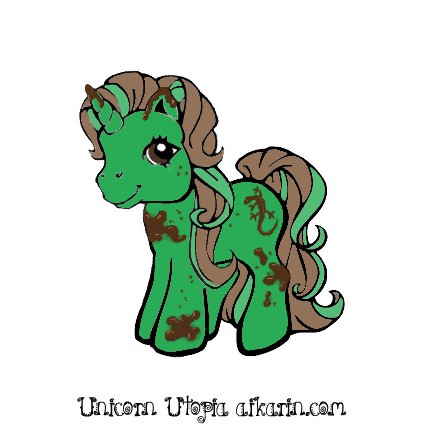 Mud Step is a dark green colored unicorn with various