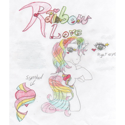 Rainbow Love is a white unicorn. Her