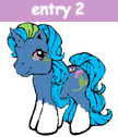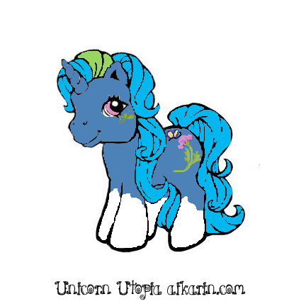 Hair: electric bright blue hair and a bright green G1 unicorn