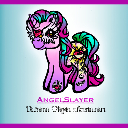 Story: AngelSlayer is a brave and protective pony. She is usually found at the Unicornian castle