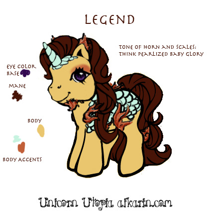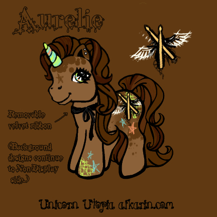 as the hearts with a golden yellow. Her horn, hearts, feathers, wings and "moons" are