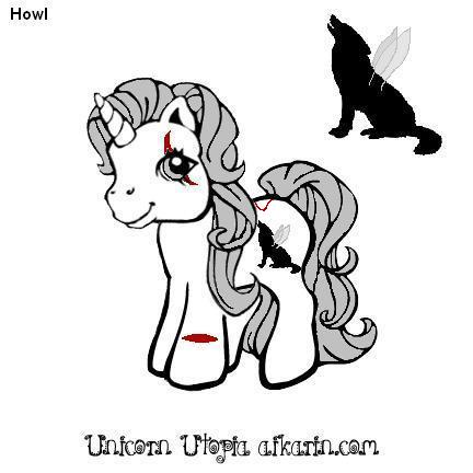 Description: Howl is a white coloured unicorn. Her hair is