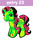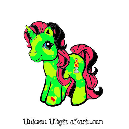 Lovin Lava is a bright green unicorn with yellow green splotches