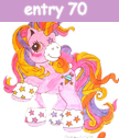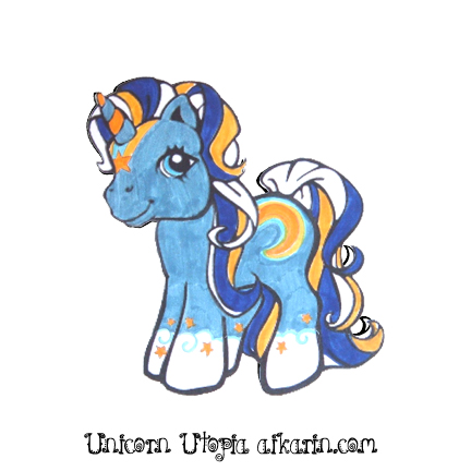 glittery lavender star. Her hoof mark is a red moon. She also has