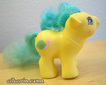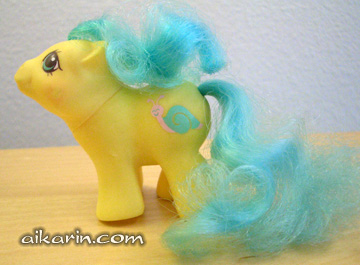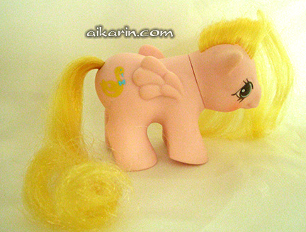 - VG/VG. pink pegasus with yellow hair. Eyes & blush